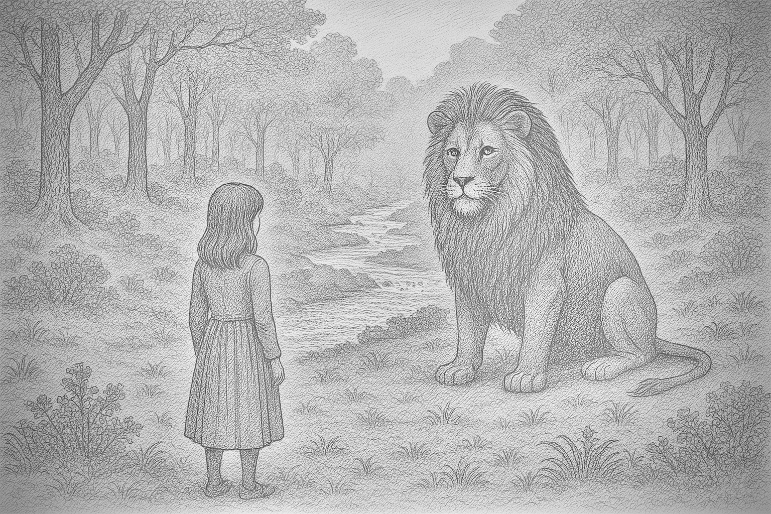 Early in The Silver Chair, a girl named Jill is transported to the land of Narnia. She is separated from her only companion and she is dying of thirst when she sees and hears a stream of flowing water. However, between Jill and the stream is the lion Aslan, who she yet does not know or trust.